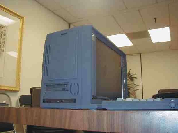 Pogled na otvoreno računalo sa strane FD i CD-a. CTFT monitor je u zadnjem pložaju.